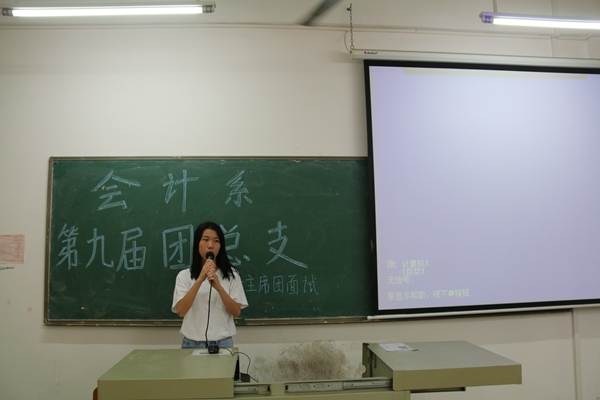 活动井然有序的进行,各个学生干事信心满满、各显其中,在面对老师严肃的问题下,学生仍能淡然面对,并能自信的回答,各学生秉承着共同携手创建美好会计系的想法。其中也有少部分学生因为紧张而说话卡顿,但这并不影响他们良好的发挥。这次活动能够顺利进行离不开老师、学生的积极配合,其目的是为学生干事提供锻炼机会,增强学生自身技能以及应对能力,同时也让学生发现自身不足并加以改进。