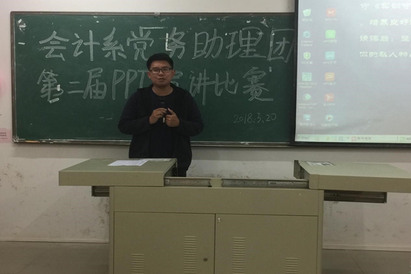 为更好地推进会计系中华传统文化系列活动,根据实际情况,会计系党务助理团于3月20日晚在博学楼B206举行第二届传统文化PPT演讲比赛。出席本次活动的嘉宾有系团总支书记兼党务助理团指导老师姚柏洲老师。