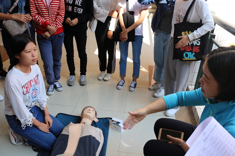 此次活动荣幸邀请到了增城区红十字会的专业人员到校向同学们普及急救知识,以提高我系学生安全意识,并掌握一定的紧急救护技能,以备不时之需。