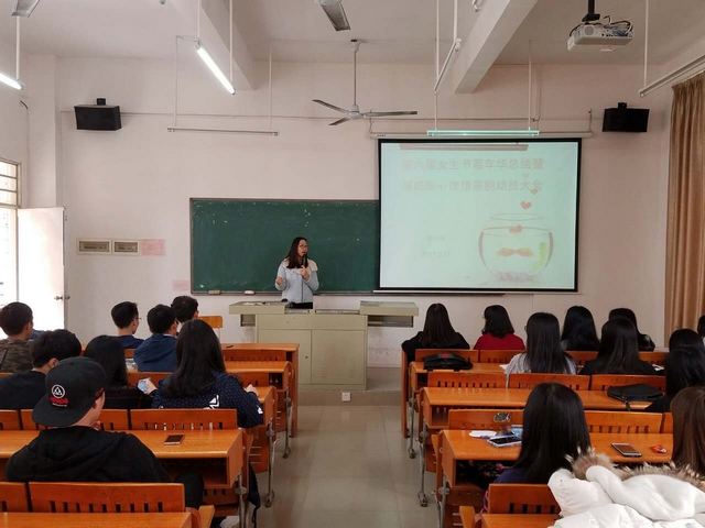 紧接着,罗琦琪老师上台为此次女生节进行总结:其一、本次活动在同学、老师当中反应比较好,希望再接再厉,举办好接下来的心理情景剧大赛;其二、此届女生节有了女生委的特色——以户外活动为主题;其三、再次点明女生委不同于其他组织的最大特点便是以举办活动为主,利用活动的平台锻炼大家的能力,从此次女生节中也看到了干事们的巨大进步。本次会议同时也是第四届心理情景剧的动员大会。情景剧历来是会计系中的重头戏,不仅能增强班级同学的团结意识和班级荣誉,也能提高学生的心理健康水平。罗琦琪老师强调,微电影要紧密包含心理问题和解决方式两个方面,最重要的是不能虚假,只有真实的故事情节才能真正的打动人心,并着重提出本次活动是一种教育活动,对每位同学的身心发展都会产生积极作用;最后女生委全体成员合影留念,整个会议在一张美好和谐的画面中落下帷幕。