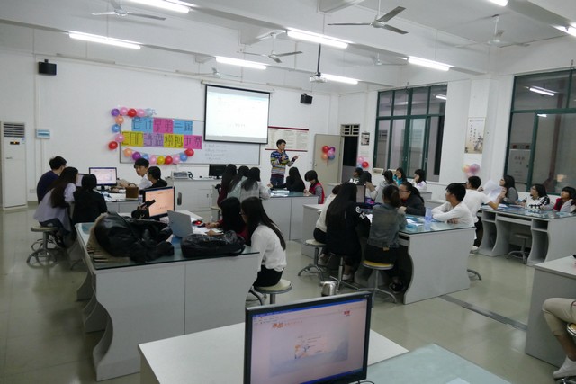 比赛开始前,谢梓灏老师为选手详细地讲解了比赛的规则,参赛人员个个意气风发,踌躇满志。随后各小组激烈地商量着经营的策略与操作步骤,认真地分析和预测比赛中可能面临的问题。比赛正式开始后,各组选手神情严肃,CEO紧张地操作着电脑、财务总监认真的推算各个报表,采购总监、生产总监、营销总监都各司其职。各组成员按部就班如火如荼地经营着自己的公司。在抢单前夕,为增添比赛的有趣性,老师特意增加了商业间谍时间。为进一步充分获取和掌握其他企业的商业信息创设一个良好氛围,各小组派出的间谍争先恐后的穿梭于公司与公司之间,商业间谍时段掀起比赛的小高潮,缓解了比赛的紧张气氛,原本雅雀无声的赛场此时笑语喧哗。一轮欢声笑语过后,迎来的是激烈的抢单时刻,各小组都积极竞争,局面异常激烈,现场的火药味十足,有的为抢到满意的订单而欢呼,有的为战略失策而懊恼。