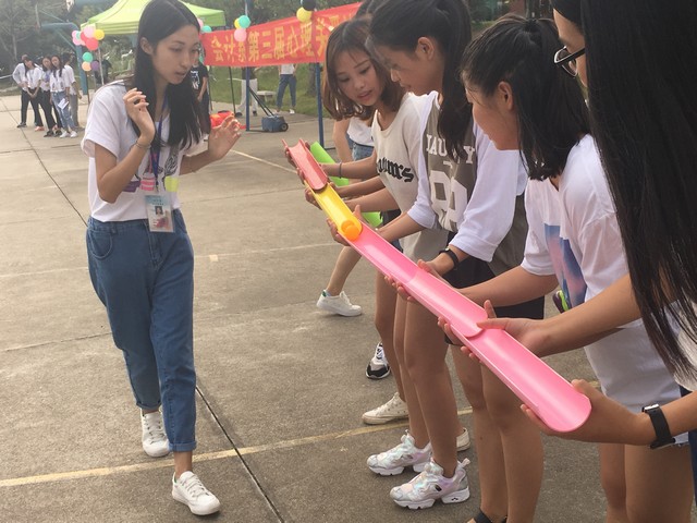本次拓展活动为第三届心理关爱沙龙系列活动之一。该活动以班级为单位,由八支队伍参加活动,进行激烈比拼。活动共设置了 “珠行万里”、“行进坦克链”、“报纸占空间”三个与团队协作有关的趣味拓展环节。比赛开始前,每支队伍都热情讨论着自己队伍的队名、口号等,场面火热。随后,活动马上展开。第一项趣味小游戏是“珠行千里”,同学们从一开始的手忙脚乱到后来的有条不紊,每一队都成功的将乒乓球运输到了终点;“行进坦克链”则考验一支队伍的团结与步调一致,唯有团结一致才能快速抵达终点,取得胜利;最后一项游戏“报纸占空间”则需同学们发挥各自的聪明才智,综合考虑、利用每个个体的特点,为集体的胜利而齐心协力。