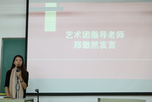 见面会在团长颜放欣的欢迎致辞中拉开帷幕,紧接着观看视频,而后前团长李培婕上台发言,提出对新干事的期望,希望新干事可以认清自己的身份,增强自己的自学能力,学会自我提升,注重礼貌问题,规范自己的言行举止,珍惜在艺术团的时间。随后由现任各队队长上台发言,都希望新干事们学会反思、创新,保持对艺术团工作的热情,在平时的工作中严格要求自己,学会做人做事。会议第四项议程,由团长宣读会计系艺术团团规,包括管理制度、日常工作制度、纪律与要求。在团总支副书记吴俊杰的发言中也重点提到前瞻性、礼貌性和团结一致,这很能体现身为艺术团干事的素质。最后艺术团指导老师郑傲然老师强调做任何事情都要有态度,不断创新,自律自觉,学习沟通和包容,尊重队长,换位思考。