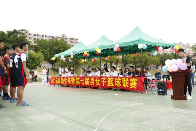 本次迎新篮球赛开幕式于2016年10月11日中在创新楼前篮球场举行。本次活动邀请了系田千喜主任、系陈少兰副主任、系党总支何标书记、系团总支姚柏洲书记,以及系全体辅导员老师、科任老师出席。