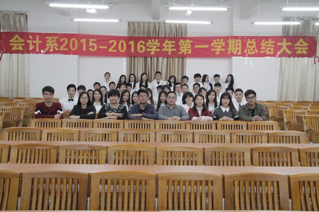 我系于2015年12月23日晚在博学楼C401隆重召开会计系学生组织2015-2016学年第一学期总结大会。出席本次大会的嘉宾有系团总支书记姚柏洲老师以及其他组织指导老师。参会人员还包括全体团学干部。