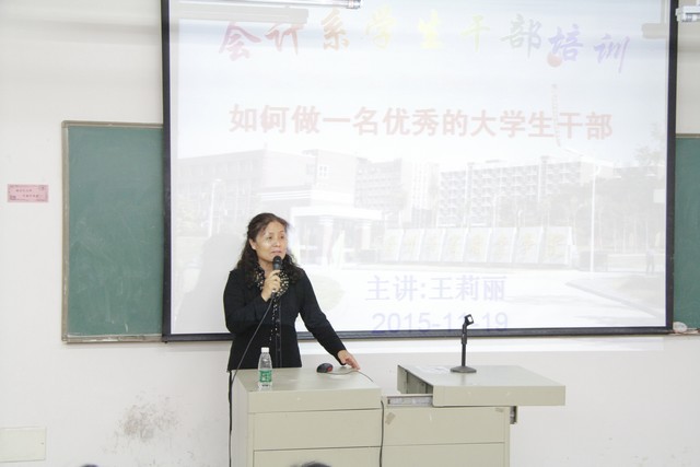 大会伊始,会计系王莉丽主任以“如何做一名优秀的大学生干部”为中心发表演讲。她指出,学生干部是广大同学的示范者,服务者,应以身作则,以学习为中心,履行好干部的使命,在工作中学会做事,学会做人,学会做干部,严格要求自己,加强自身各方面锻炼,充分利用时间,体现自身价值。王主任同时还指出当好学生干部的四点关键要素:一,善于认识自己,提高自身素质,做一个谦虚守纪,脚踏实地的人;二,培养健康心理,树立整体形象,以积极的态度赢得人生;三,掌握工作技巧方法;四,具备良好的组织协调能力。最后,王主任对会计系过去的各项工作取得优秀成果以及会计系竞赛取得优异成绩进行了表彰,并寄予学生干部希望与要求,要求学生干部做好本分努力学习,履行职责完成工作,希望学生干部提高自己的处事能力和服务意识,具备良好的素质和能力,希望会计系的未来取得更大的成就!