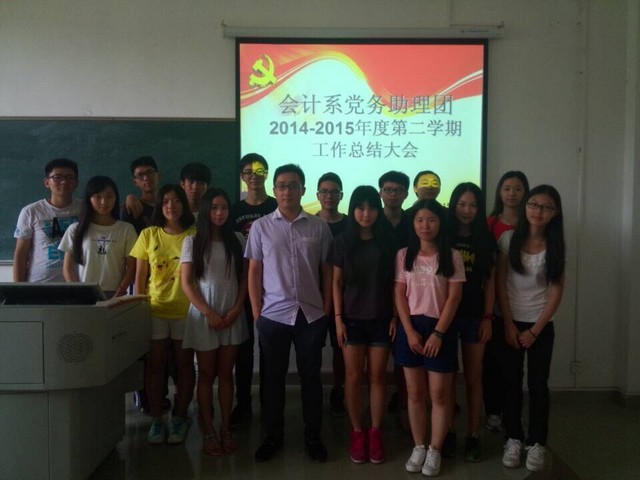 我系党务助理团于2015年6月4日中午12:50在创新楼111教室召开会计系党务助理团(以下简称“党务团”)2014-2015年度第二学期工作总结大会。届时,指导老师何泽航以及党务团全体成员参加了本次会议。