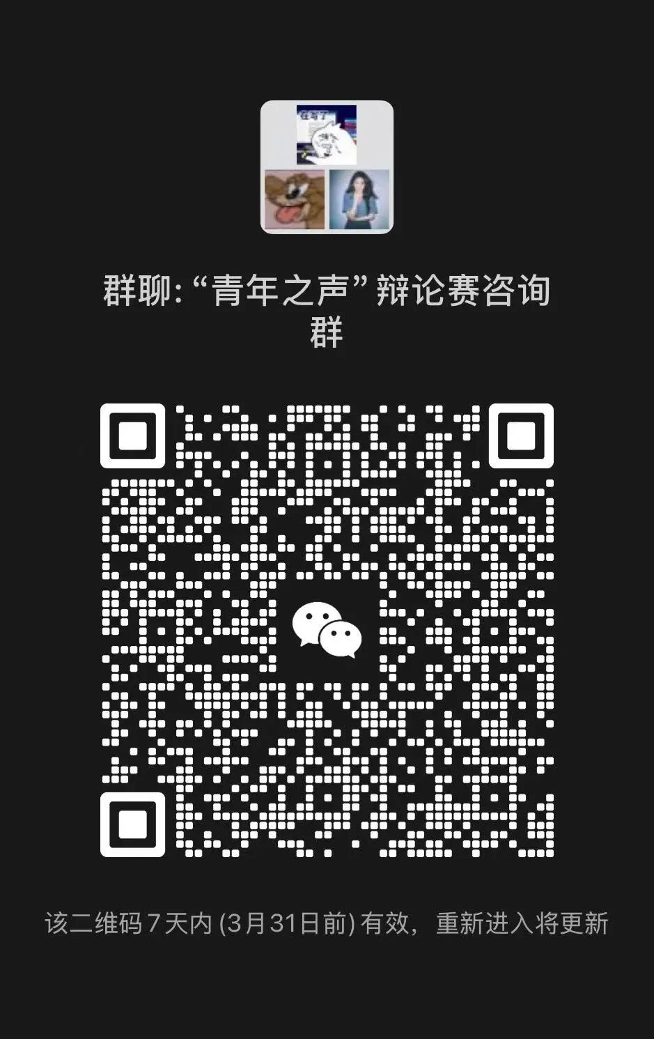 辩理明思,舌绽芳华,辩论赛是一项集思辨、逻辑推理语言表达于一体的活动,旨在通过辩论的形式提升参与者的思维能力,表达能力及团队合作精神,提升同学们的批判性思维,培养深入分析问题习惯;增强语言表达与公共演讲能力;促进团队合作,培养团队精神;激发对社会等问题思考;普及辩论文化,扩大其社群影响力。 报名时间:2025年3月24日~3月31日 活动时间:2025年4月上旬(具体时间进群通知) 参赛对象:各年级学生,每支队伍由5名成员组成 最佳辩手奖:颁发给表现最为突出、思辨能力最强的个人。 最佳团队奖:颁发给表现最为出色、团队协作最为默契的辩论队伍。 参与奖:所有参赛者均可获得参与奖,以鼓励他们的努力与表现。(加综合分0.5分) 扫下面二维码报名和进群: 编辑:范金霞 初审:陈慧欣 肖婷南 复审:周冰娜 终审:顾晖