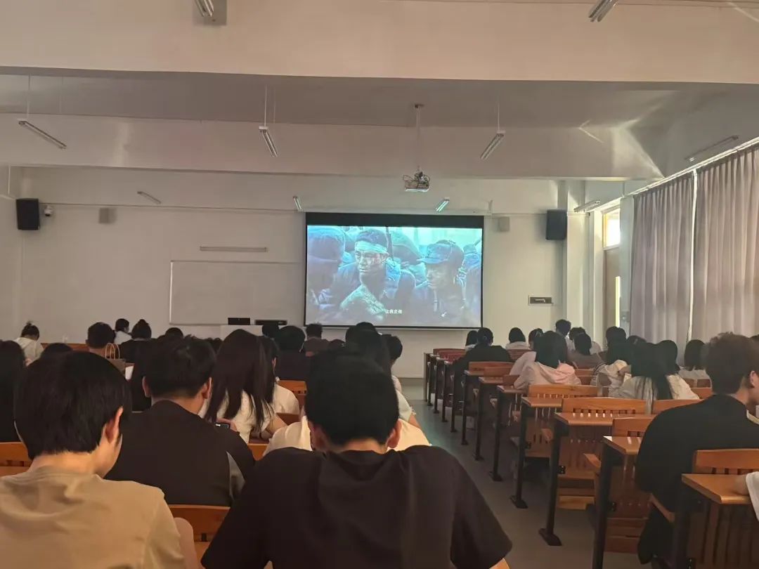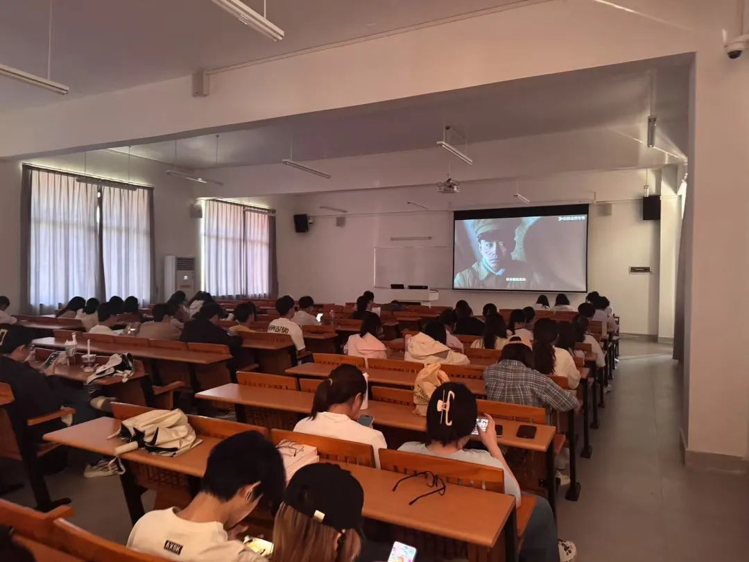 为弘扬雷锋精神,深化爱国主义教育,陈享书院于3月26日16:00在二号楼307教室开展了"传承雷锋精神,厚植爱国情怀"主题团日观影活动。旨在引导青年学生感悟革命先辈的奉献精神,激发爱国热情与社会责任感。本次活动参与人数共计150人。 (一)奏唱团歌 全体起立,面向团旗,奏唱《光荣啊,中国共青团》。 (二)观影环节 放映厅里灯光渐暗,大银幕上,《冲锋》正式开场。 随着影片推进,教室里满是此起彼伏的惊叹声、抽气声。有的同学激动地和身旁的伙伴小声议论,话语中充满了对剧情的惊叹;有的同学则沉浸在紧张的剧情里,表情凝重,若有所思。 影片落幕,灯光亮起,教室里短暂地陷入了沉默,随后响起了热烈的掌声。同学们的脸上,或洋溢着激动,或流露出沉思,这场电影,无疑在他们心中留下了难以磨灭的印记。 (三)合影留念 光影虽散,精神不朽。这张合照,定格了我们对《冲锋》的感动,更承载着对先辈精神的传承。愿同学们带着这份炽热奔赴未来,不负时代,不负所望。 照片:张靖豪 编辑:刘依琳 初审:陈慧欣 肖婷南 复审:周冰娜 终审:顾晖
