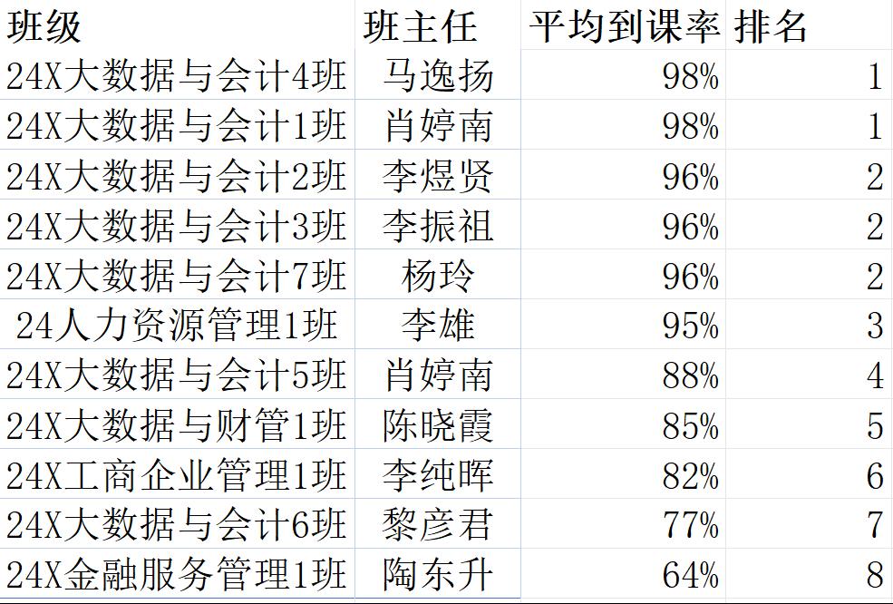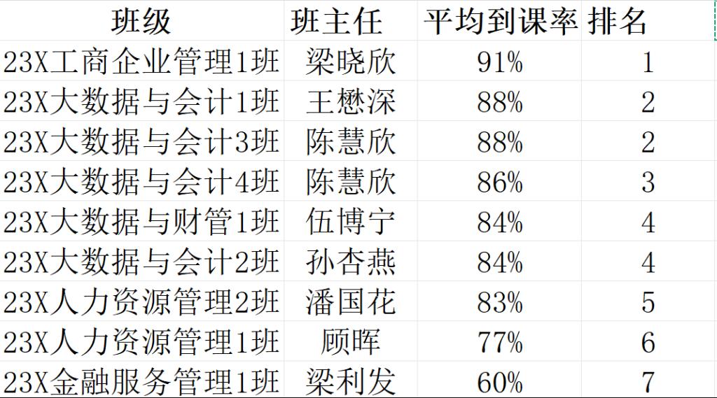 注:以上为一周的平均值,查课中途离开教室或请假的人数会影响平均值!