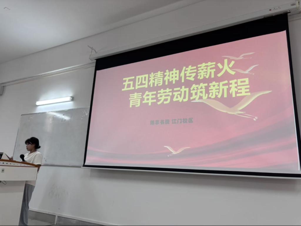 主持人让获奖者上台领取奖品,随后对活动进行总结,强调了五四精神和劳动精神的重要性,鼓励青年在今后的学习和工作中传承和弘扬这些精神。最后安排同学们加分并有序离场。