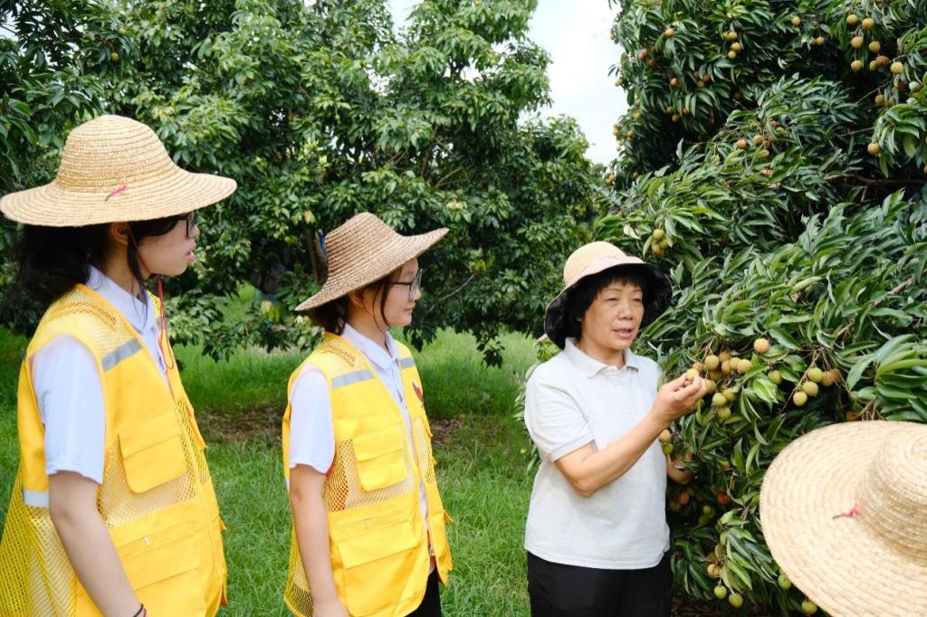2025 年 7 月 8 日广州华商职业学院“增城三镇荔枝”突击队到三镇果场开展广东百千万工程下乡活动,荔枝专家廖美敬亲临现场,为突击队队员们带来了一场别开生面的荔枝知识盛宴。