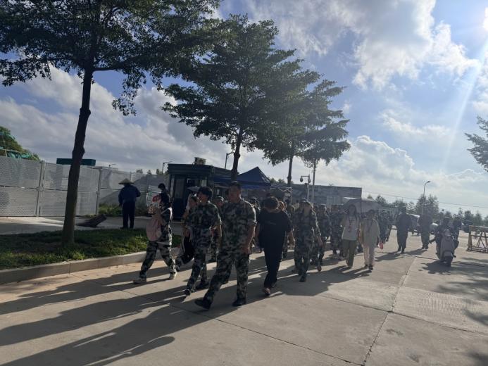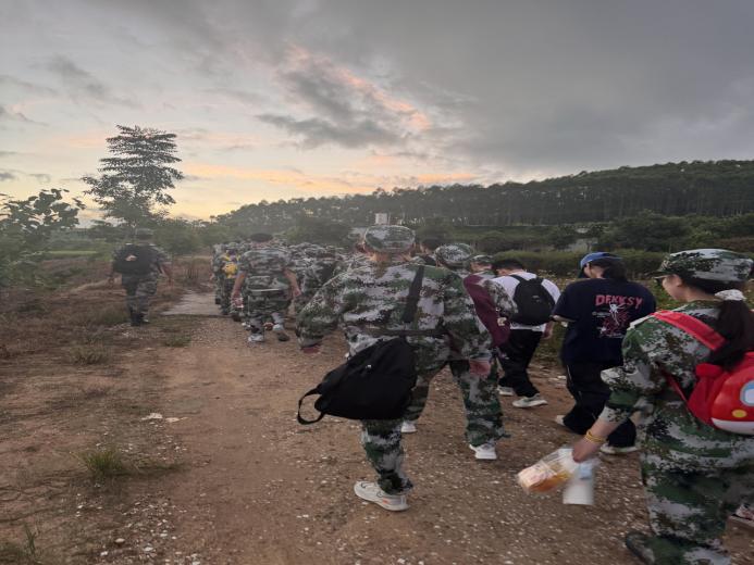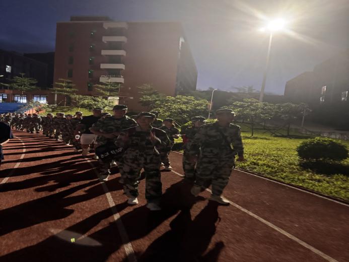 夜色中,数字财经学院25级新生迅速集结。他们身着整齐军装,站姿挺拔,眼神坚定,静静等候军训拉练指令,满是青春朝气与昂扬斗志。 数字财经学院25级新生拉练队伍整装出发!学子们身着军装、队列齐整,伴着昂扬气势迈步向前,以青春姿态开启拉练征程。拉练队伍沿既定路线快步前行,东方泛起微光,夜色悄然隐退。晨曦与沿途灯火交相辉映,照亮新生们年轻且坚毅的脸庞。 无论脚下是平坦公路,还是崎岖小径,数字财经学院25级新生都全力保持队形、不甘落后。汗水浸透衣衫,眼中却满是坚定;教官与辅导员的鼓励更让大家士气高涨,携手迎挑战,在征途中尽显少年意气。行军途中,孙虎副校长亲临现场,关切叮嘱学子注意安全,为大家加油鼓劲,暖心身影让队伍士气更盛,坚定前行步伐。 休整时刻,营队里欢笑声此起彼伏,有的分享才艺,有的互相打趣,行军带来的疲惫,在轻松氛围中悄悄消散。休整结束,队伍迅速重整队形。新生们一扫疲惫,眼神重焕坚定,伴着响亮口号再次迈步,向着拉练目标继续前行。学校门口前,队伍有序停下。新生们舒展眉头,露出笑容,用坚持换来胜利,为此次军训拉练交出亮眼答卷。 编辑:张靖豪 初审:陈慧欣 肖婷南 复审:杨芳 终审:顾晖