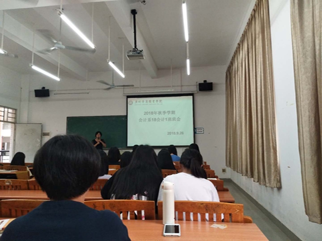 为保证新学期学生工作的顺利开展,让新生更快地融入大学生活,9月26日下午5:40,18会计1班在博学楼B304召开2018年秋季学期第一次班会。