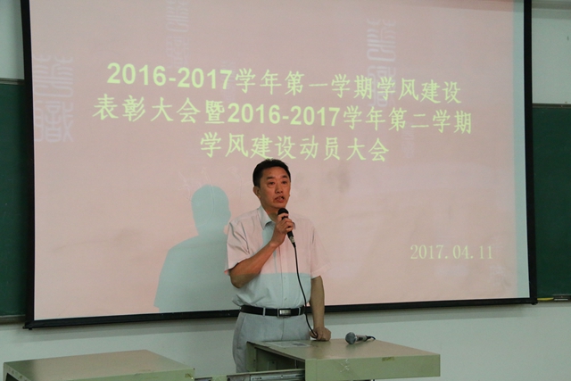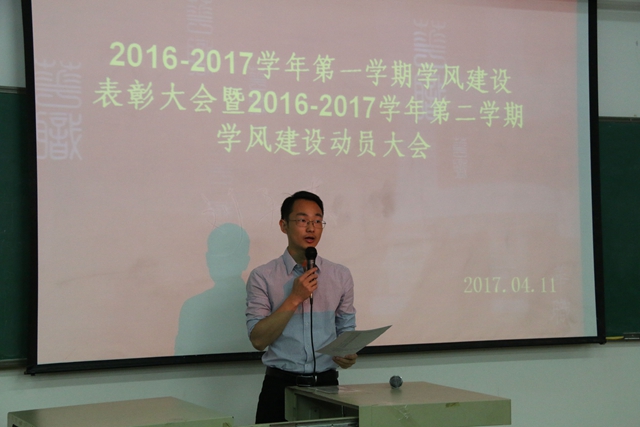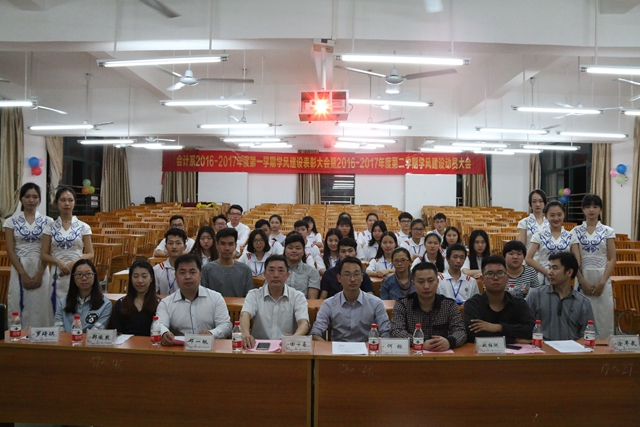 为了加强会计系学风班风建设,我系于14月11日晚上19:10分在博学楼C501举行了2016学年秋季学期学风建设表彰大会暨2017学年春季学期学风建设动员大会。出席本次大会的领导有会计系田千喜主任、系党总支何标书记、专业会计教研室主任邓一帆老师、财务管理教研室主任涂早武老师、系团总支姚柏洲书记以及会计系部分老师。
