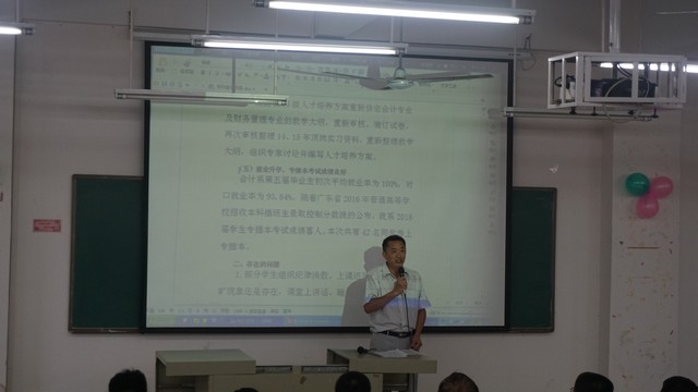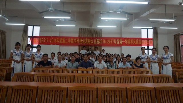 为了传承会计系的优良学风,我系于10月18日下午16:10分在博学楼C201举行2015-2016学年第二学期学风建设表彰大会暨2016-2017学年第一学期学风建设动员大会。出席本次会议的领导有学院詹业宏副院长、会计系田千喜主任、教务处张国基处长、督导处吴大扣主任、学生处顾晖副处长、会计系陈少兰副主任、系党总支何标书记,系团总支姚柏洲书记以及会计系老师和获奖学生代表。