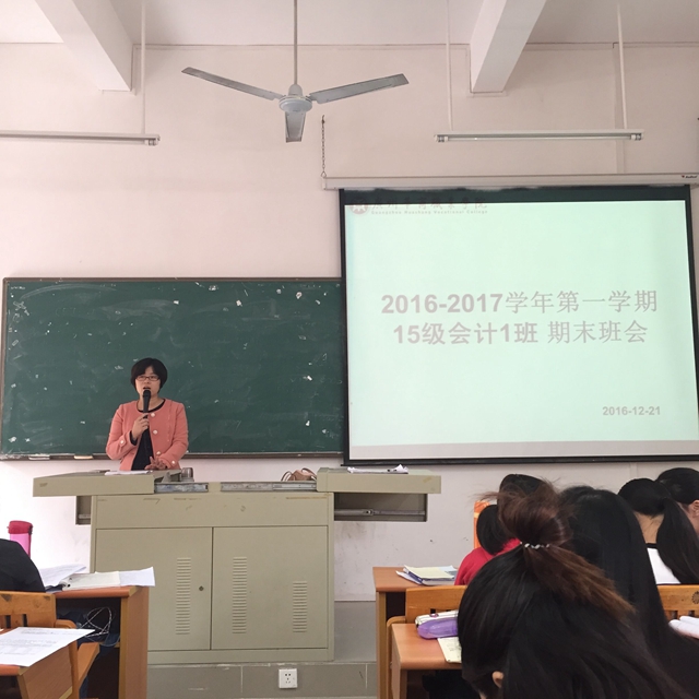 12月21日上午课间,会计系15级会计1班期末班会在博学楼B306召开。本次会议由陈少兰老师主持,会计1班全体同学参加本次班会。
