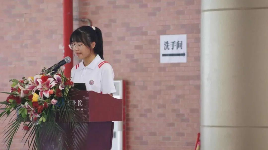 陈玉婷老师作为教师代表发言,她激励同学们勇于争先评优,并且制定明确的学习目标。俗话说“良好的开端是成功的一半”。在大学期间应该坚定自己的步伐,创出属于自己的成绩。