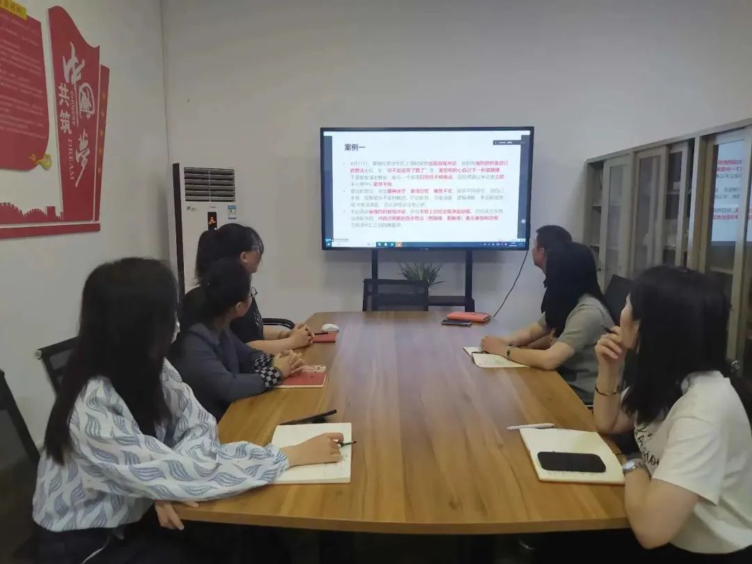 2023年4月24日下午14:30,财金学院学工团队在博学楼A509通过腾讯会议观看广东省高校心理危机干预专题会议。主讲人是南方医科大学心理健康教育与咨询中心的赵静波主任。