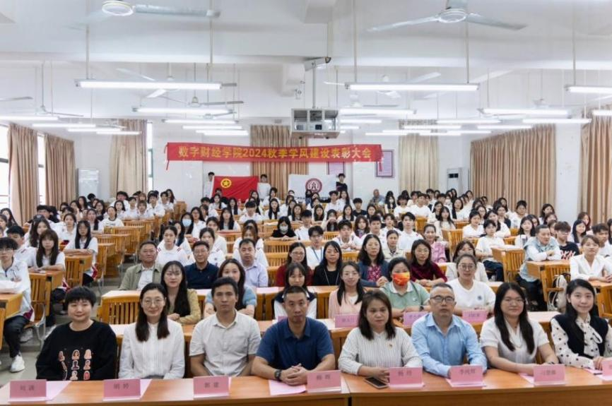 为表彰优秀,鼓励先进,树立典型,营造我院浓厚的学习氛围,进一步调动全体师生学习的积极性和主动性,帮助学生树立正确的学习观,数字财经学院于2024年11月18日中午在博学楼C201召开2024年秋季学风建设表彰大会。参与本次表彰大会的领导嘉宾分别是杨玲院长、李纯辉副院长、顾晖副院长以及院辅导员、行政老师、各专业负责人老师、科任老师。