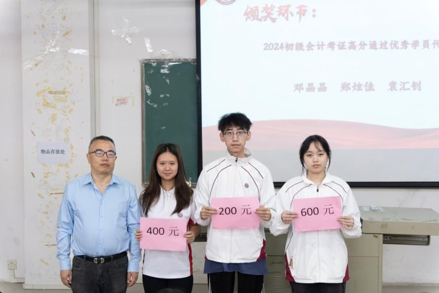 李纯辉副院长为初级会计师考证高分通过优秀学员颁发奖金
