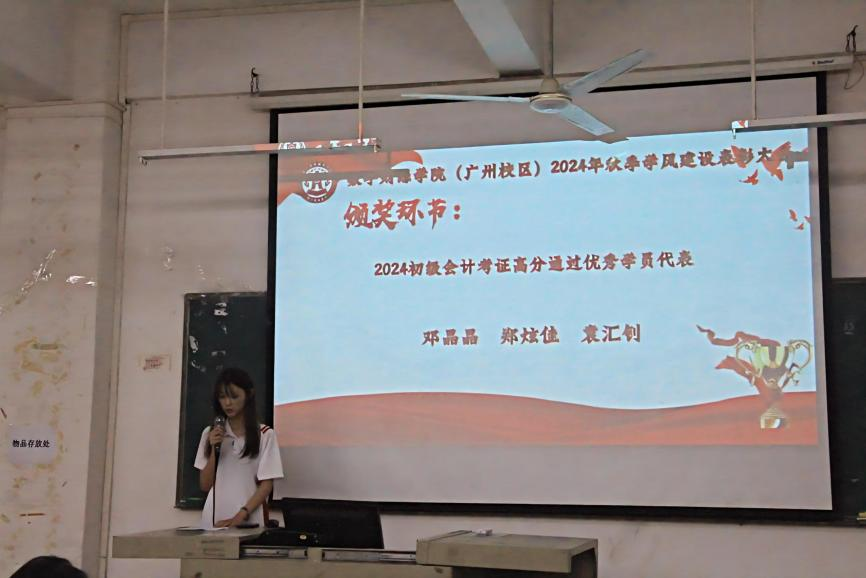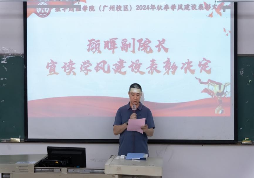顾晖副院长宣读“数字财经学院关于表彰2024年度秋季学风建设先进集体与个人的决定”。同时希望受到表彰的集体和个人能戒骄戒躁、勇于创新、再创佳绩。