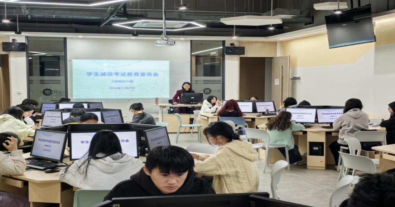 诚信考试教育宣传会由数字财经学院各班班主任分别召开,向同学们阐释“诚信立学”的重要性,依据考风考纪的相关规章制度,结合以往的考试经验,分享考试流程和注意事项,并通过列举以往考试中的违纪案例,让学生们深刻认识到作弊的严重后果。
