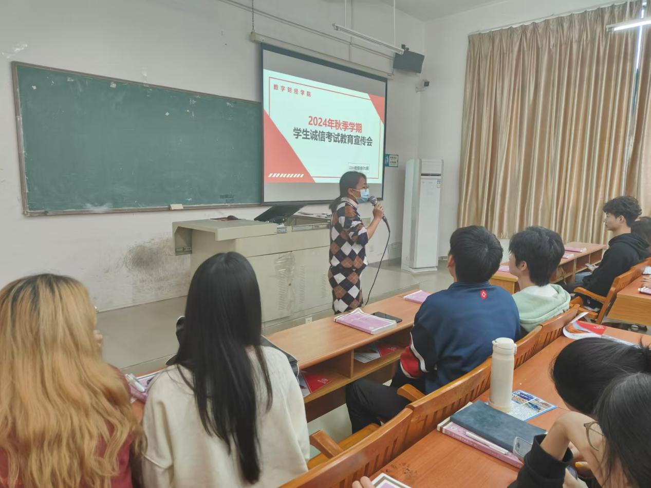 期末之际,为强化同学们的诚信考试观念,营造公平公正的考试环境,数字财经学院于第14周起在各年级各班级分别开展了“正考风,肃考纪”的诚信考试教育宣传会,进一步促进我院优良考风学风建设。