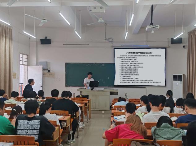 班会伊始,生活委员便强调了网络安全的紧迫性和重要性,并引导全班同学共同宣读了《广州华商职业学院反诈承诺书》。承诺书明确了五个关键行动点:
