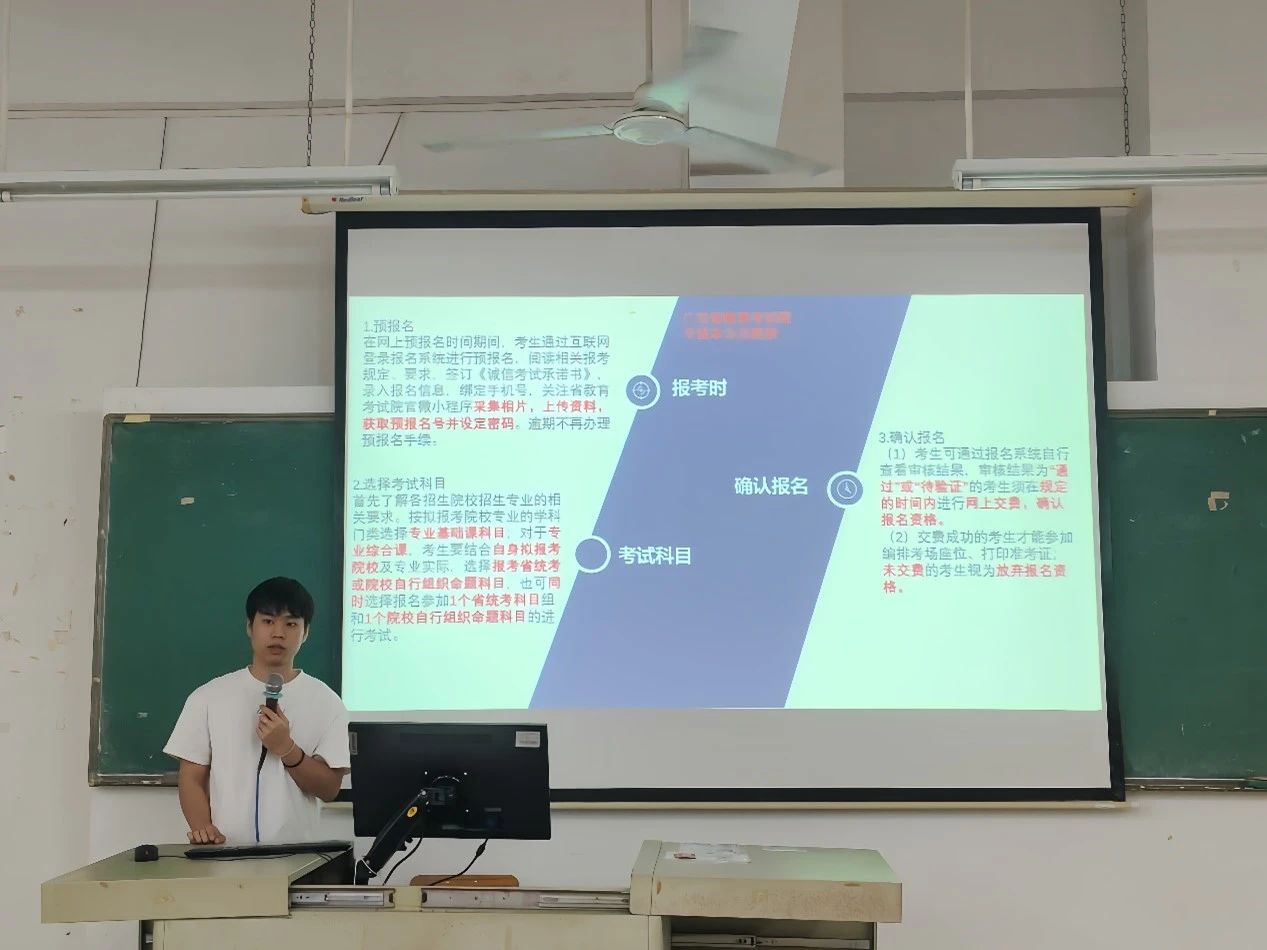 师兄们分别从备考心态调整、高效学习方法、合理复习时长安排以及考试技巧等多个维度,为同学们提供了宝贵的经验分享。他们不仅深入解读了专升本政策、报考条件及专业限制等关键信息,还详细剖析了各科目的考试重点和难点,帮助同学们精准把握复习方向,实现针对性备考。