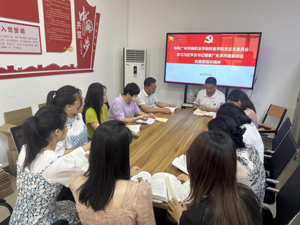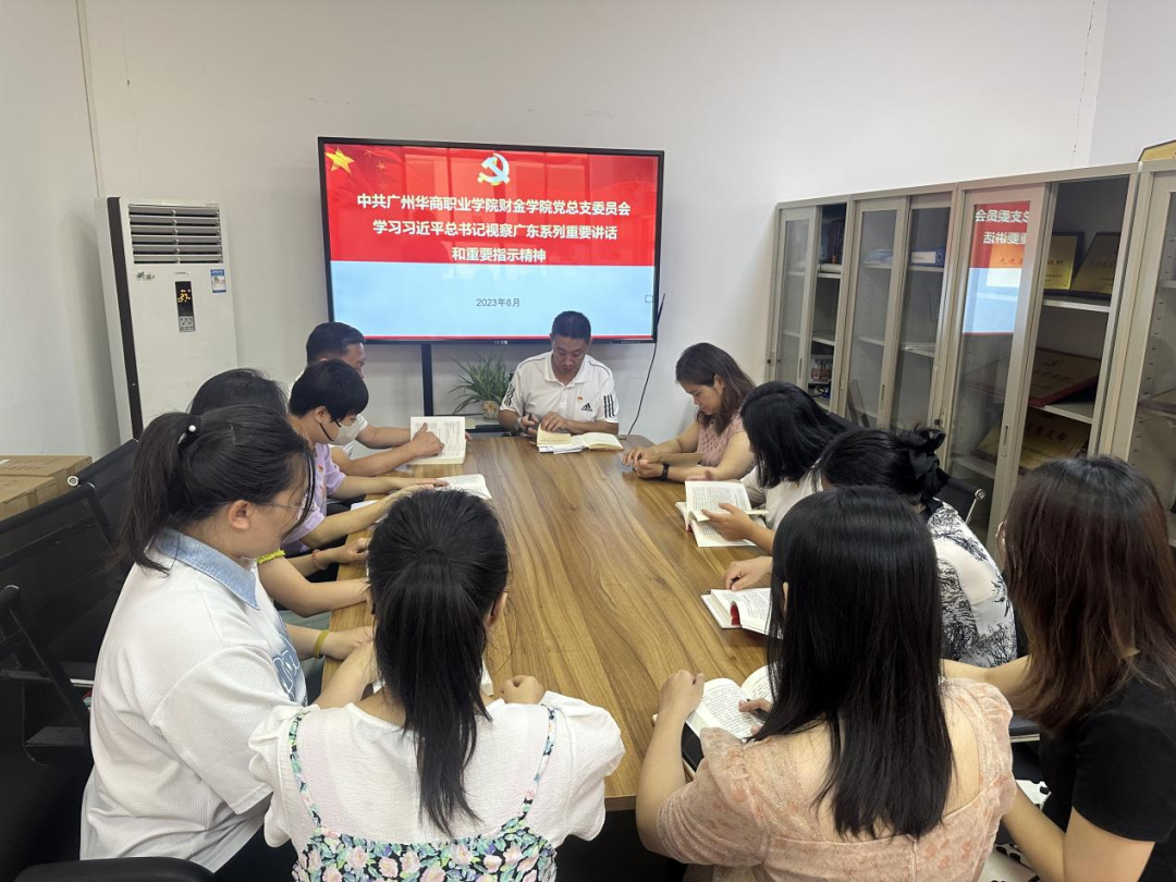 为深入学习习近平总书记视察广东系列讲话和重要指示精神,认真落实相关文件精神,2023年6月5日,财金学院党总支在博A509组织教师党员集中学习,财金学院党总支书记顾晖主持会议。