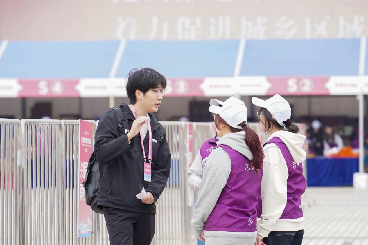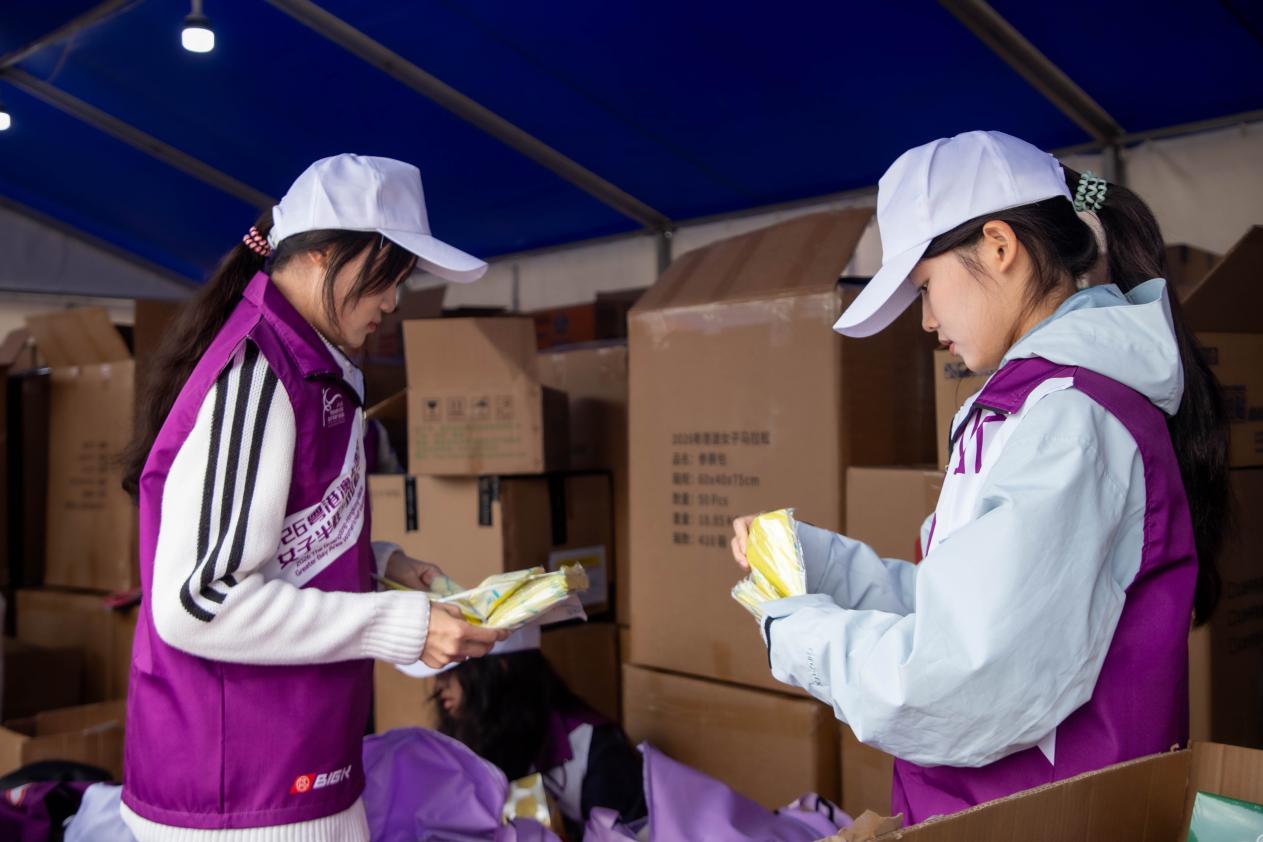 在参赛包与参赛服保障区,我院志愿者们提前到岗,化身物资保障的“大后方”守护者。面对堆积如山的赛事物资,大家分工协作,仔细核对物资清单、高效打包参赛包,将参赛服、号码布、芯片等物料精准搭配;发放环节中,志愿者们耐心核验选手信息,精准匹配参赛服尺码,把一份份暖心物资稳稳送到选手手中,用专业的服务确保领物流程顺畅高效。