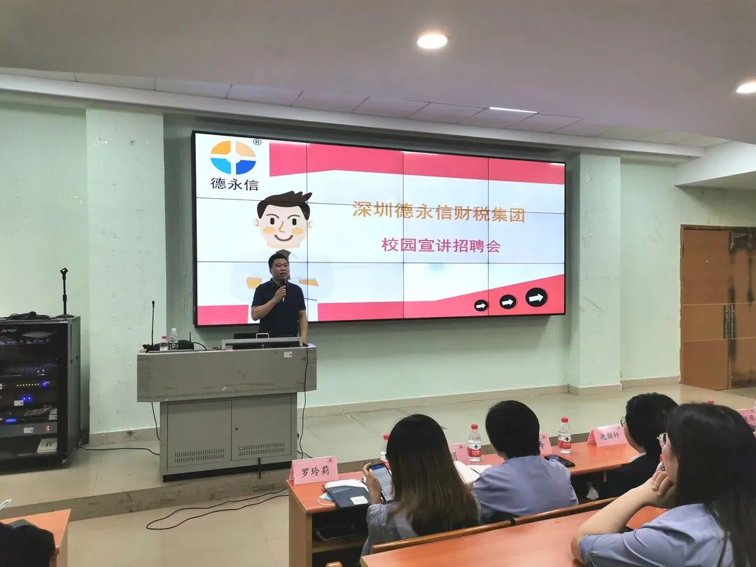 最后,深圳德永信财税集团进行了现场招聘,同学们积极向企业投放了简历并进行了初次面试。