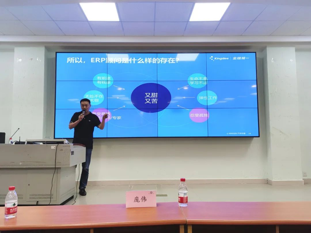 金蝶软件有限公司宣讲人为大家详细介绍了EPR产品的生命全周期、实施的日常工作与EPR顾问的能力素质要求。宣讲人说到,EPR信息顾问是又苦又甜的。需要能吃苦耐劳,学习能力强的优质人才。
