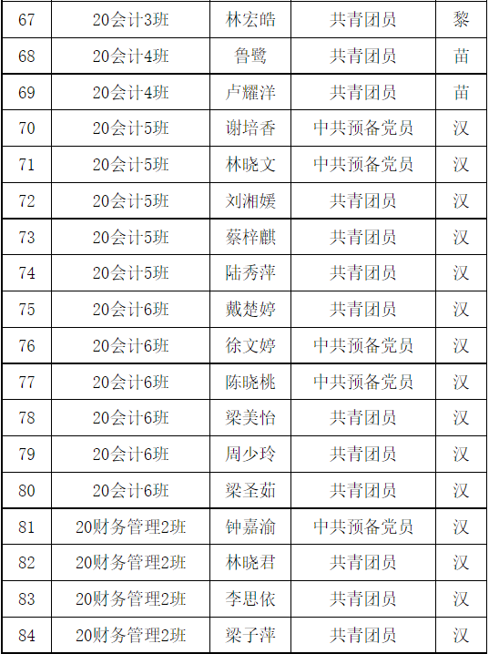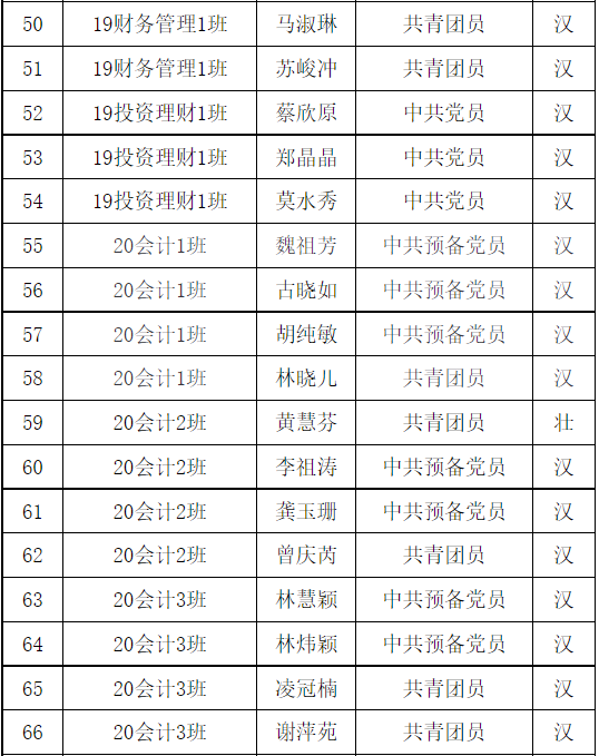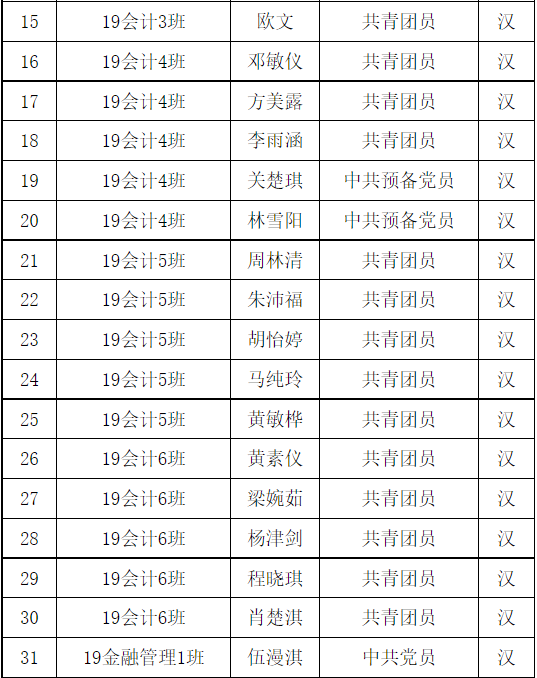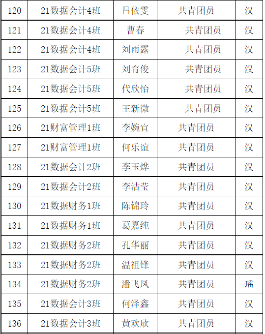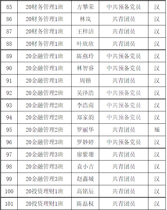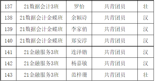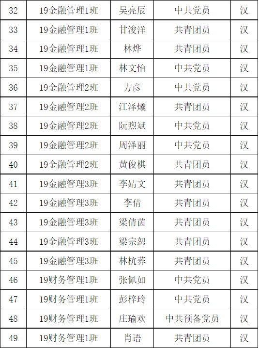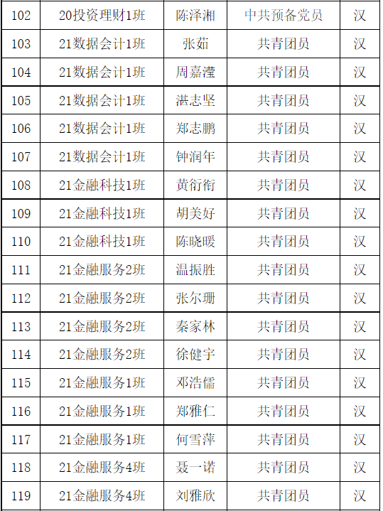 共青团广州华商职业学院财金学院第1次代表大会团员代表名单已产生,现予以公示。任何团支部和个人对评审结果如有异议,可在公示期内及时向财金学院团总支书记反馈。