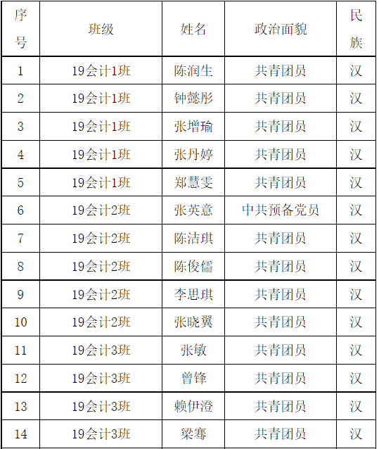 各团支部团员代表名单公示如下:
