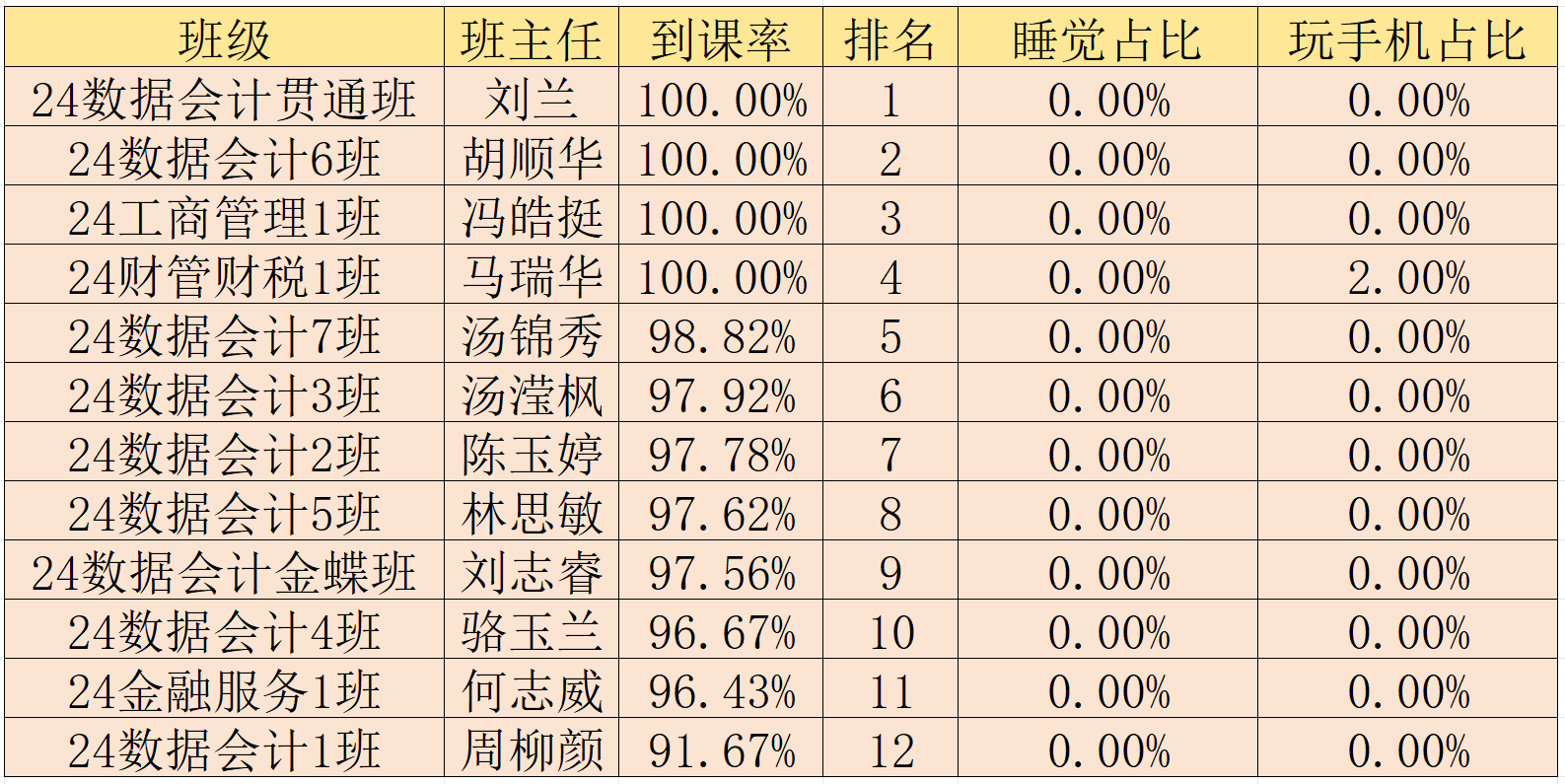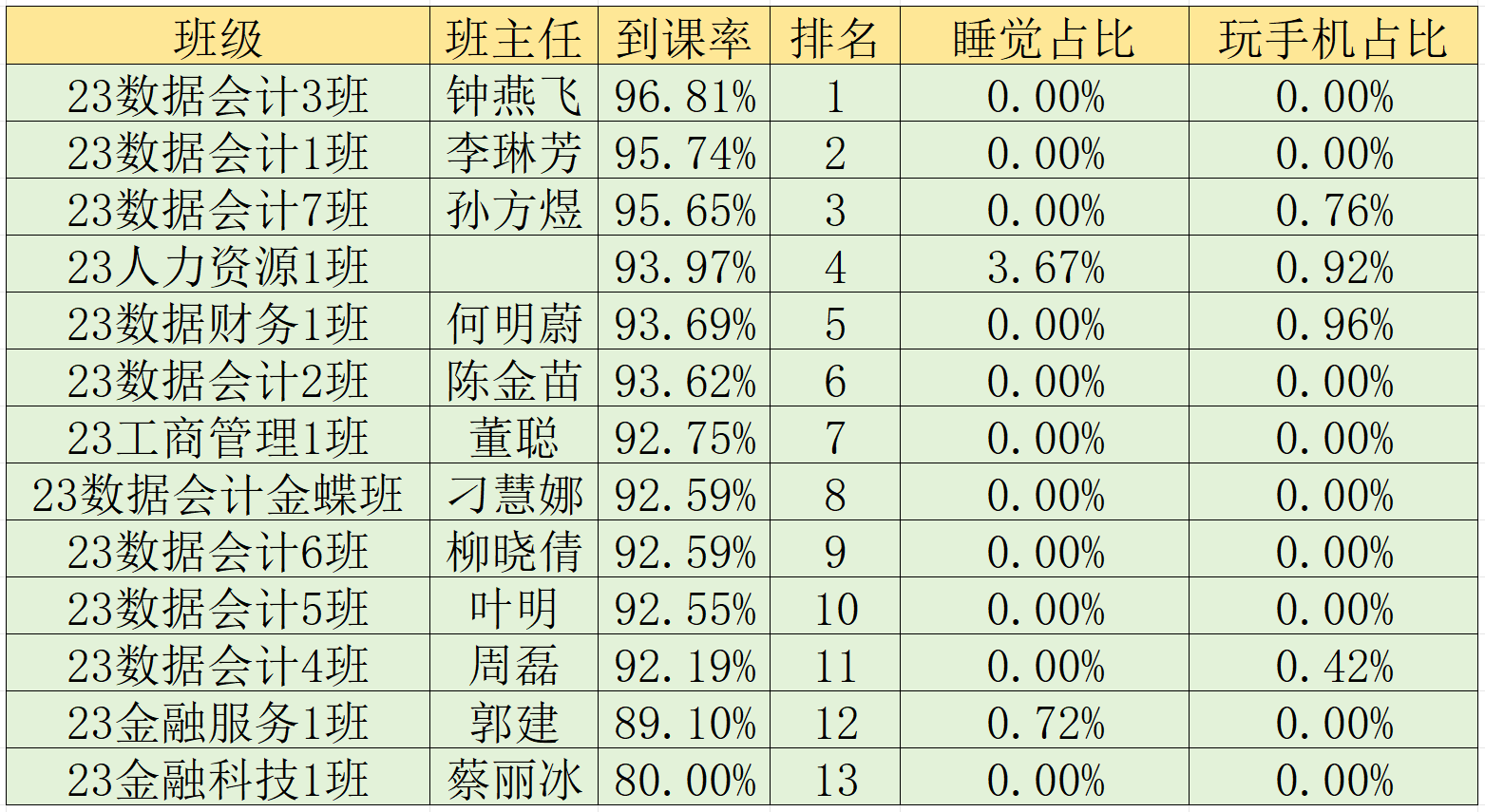 【学风建设】数字财经学院第十五周各班到课率汇总
