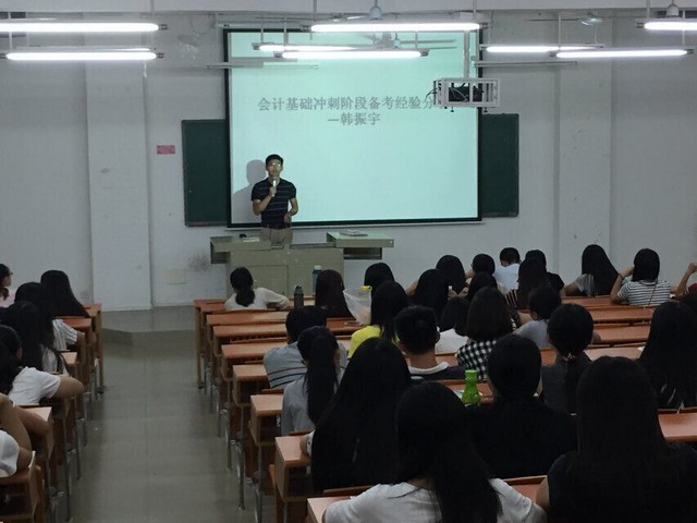 首先,王莉丽主任发表了讲话。王莉丽主任先告诉同学们此次会议对近期考证动向的专家分析、考会计从业证的意义以及报考辅导班的相关事情,让学生明白此次大会对他们的重要性。而后,韩振宇老师向同学们分享冲刺阶段备考的经验。针对考证的过程中出现的问题做了具体的分析与指导。总的来说,要胆大心细,学会联想,做到融会贯通,举一反三,韩老师更希望同学们要在日常的学习中注意总结积累。