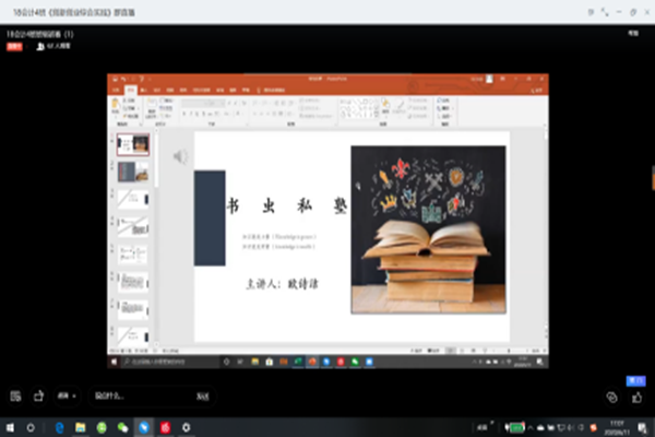 根据第六届中国国际“互联网+”大学生创新创业大赛校内选拔赛(会计学院院赛)初赛安排,6月11日下午,18级会计4班初赛项目路演在钉钉群以视频直播的方式拉开帷幕。本次路演由林汶樱老师担任评委,18级会计4班共有15个项目参加到此次路演当中。