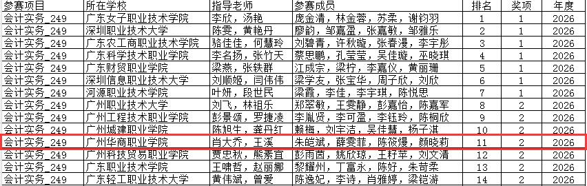 3月7日至8日,2025-2026学年广东省职业院校技能大赛会计实务赛项在广东女子职业技术学院(番禺校区)圆满落幕。来自全省各地职业院校的70支参赛队伍同台竞技,展开激烈角逐。低空经济与商务学院由朱垲斌、薛雯菲、陈筱熳、颜晓莉四位同学组成的代表队,在肖大乔、王溪两位老师的悉心指导下,凭借扎实的专业功底、默契的团队协作和稳定的临场发挥,最终排名第11位,荣获省级二等奖。此次成绩实现了学院在该赛项上的新突破,充分展现了学院在会计实务教学方面的扎实基础和育人成效。