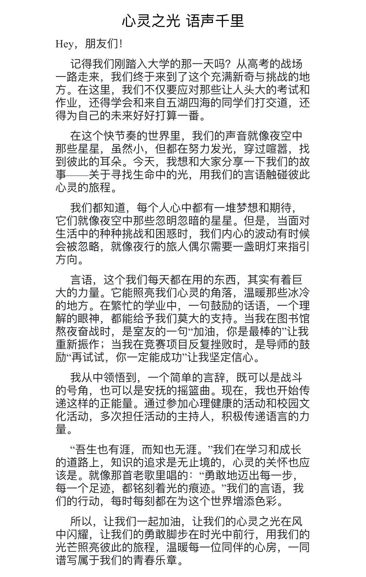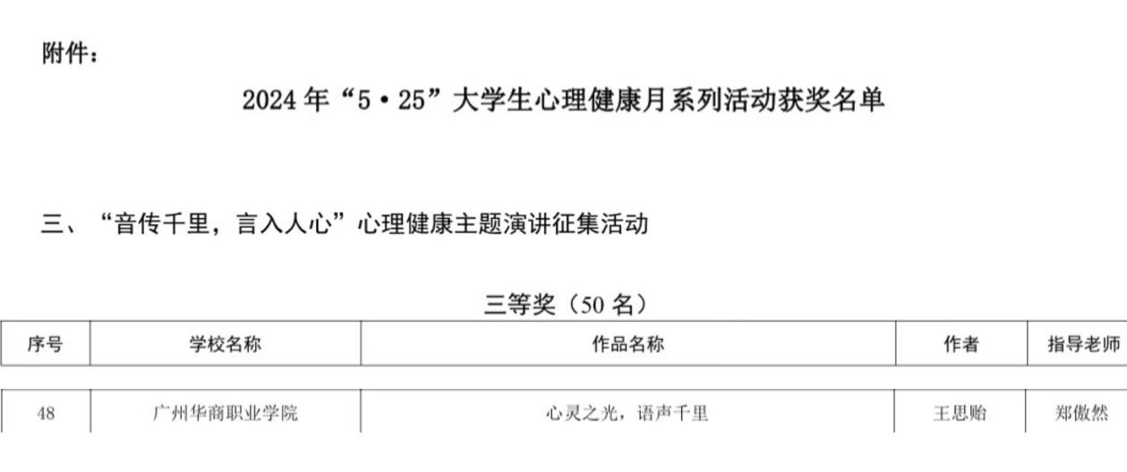 让我们为王思贻同学送上最真挚的祝贺!她的努力和才华不仅得到了应有的认可,更激励着我们在未来的日子里,继续在心理健康的道路上携手前行,为更多的人带去温暖与力量。