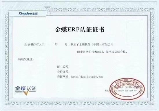 金蝶ERP认证是金蝶公司推出以金蝶产品为核心的认证培训体系,金蝶ERP认证证书是对金蝶ERP专业身份的资质证明。参加金蝶ERP认证培训及考试合格的学员将获得金蝶公司颁发的金蝶ERP认证证书并被录入金蝶后备人才库;获得金蝶认证体系认证的学员可借由金蝶与人力资源机构合作的人才通道,获得良好的就业推荐机会。