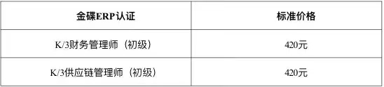 金碟ERP单认证项目价格