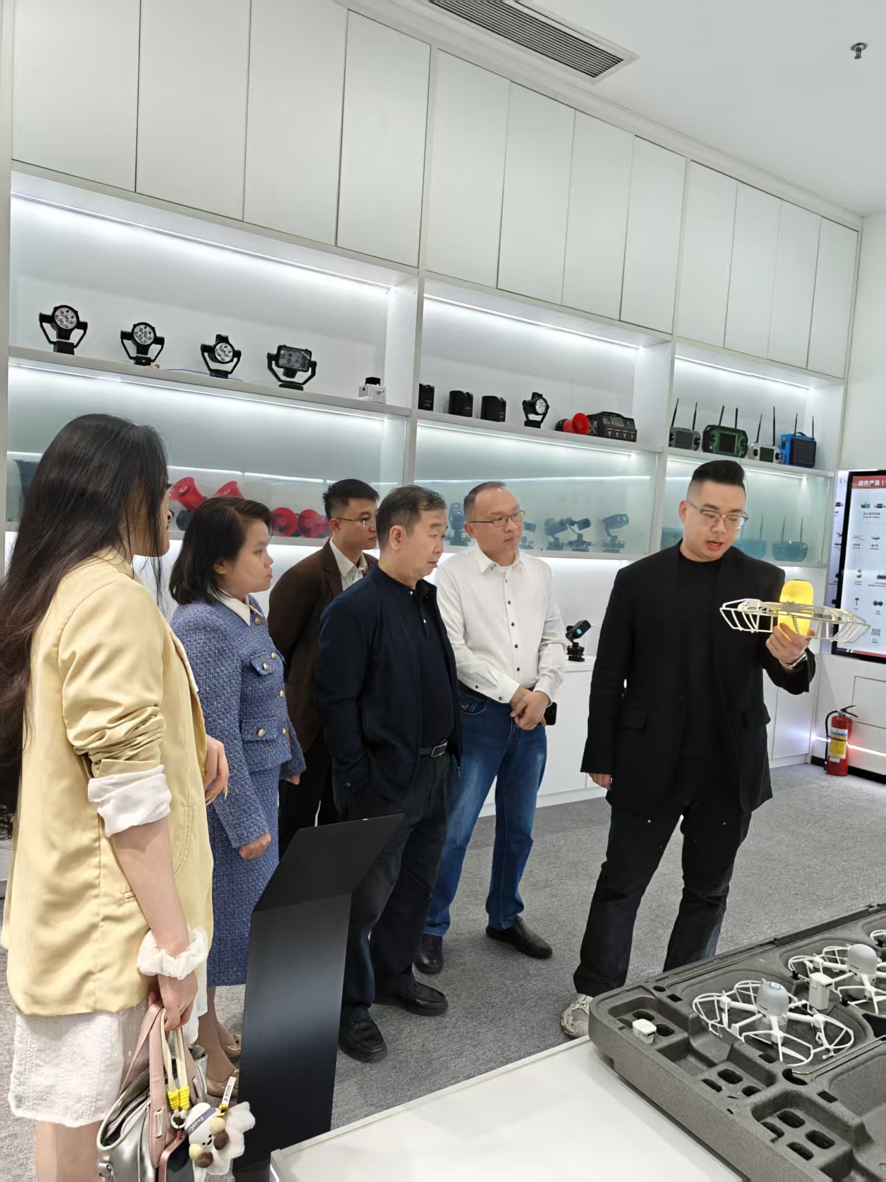 在张倚彬负责人、曲金亿经理的陪同下,朱小平副校长一行首先深入企业生产一线与应用展示区,系统考察了无人机全产业链布局与核心技术成果。从“入云龙II”“插翅虎M11”等明星产品的模块化生产流水线,到碳纤一体成型机壳、高精度PCBA板的精密制造工艺,再到地面站系统的技术运维场景,考察组详细记录了设备配置标准与生产实训流程。