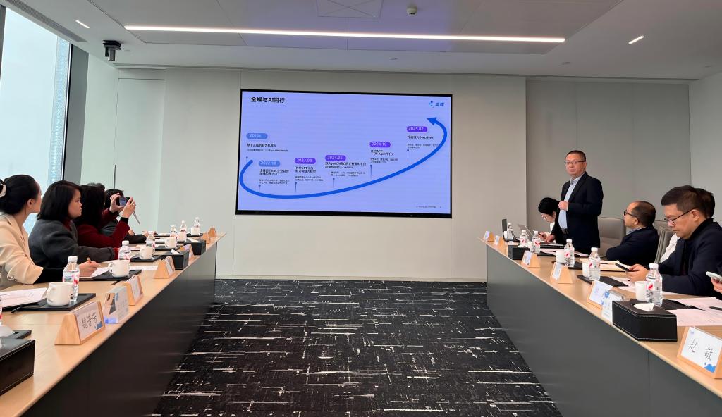 本次参观金蝶数字展厅,不仅是学院领导与教师团队的一次沉浸式体验,更是校企双方迈向深度协同、共同探索商科教育创新路径的重要一步。金蝶公司在菲律宾、印尼等地的海外业务拓展,与学院商科人才的国际化、数字化培养方向高度同频,基于此,双方将凝聚共识系统构建产教融合新框架,围绕课程共建、实习就业、师资共培等领域开展务实合作,致力于共同培养能够赋能职业教育出海、推动国际合作、服务区域发展的新一代应用型商科人才。