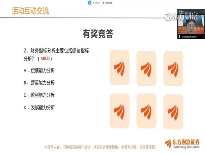 金融协会联合东方财富证券于8月10日下午15:30开展了“详解财报数据,明辨优质企业”的投教活动。本次线上讲座主要聚焦财务报表的分析,让同学们学会解读财务报表的数据...