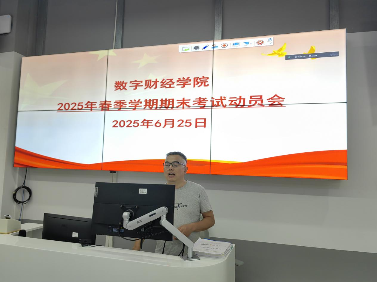 2025年6月25日中午12:00,数字财经学院召开2025年春季学期期末考试动员会,会议由李纯辉副院长主持,学院全体教师参会,意在确保考试公平、规范、有序进行。李纯辉副院...