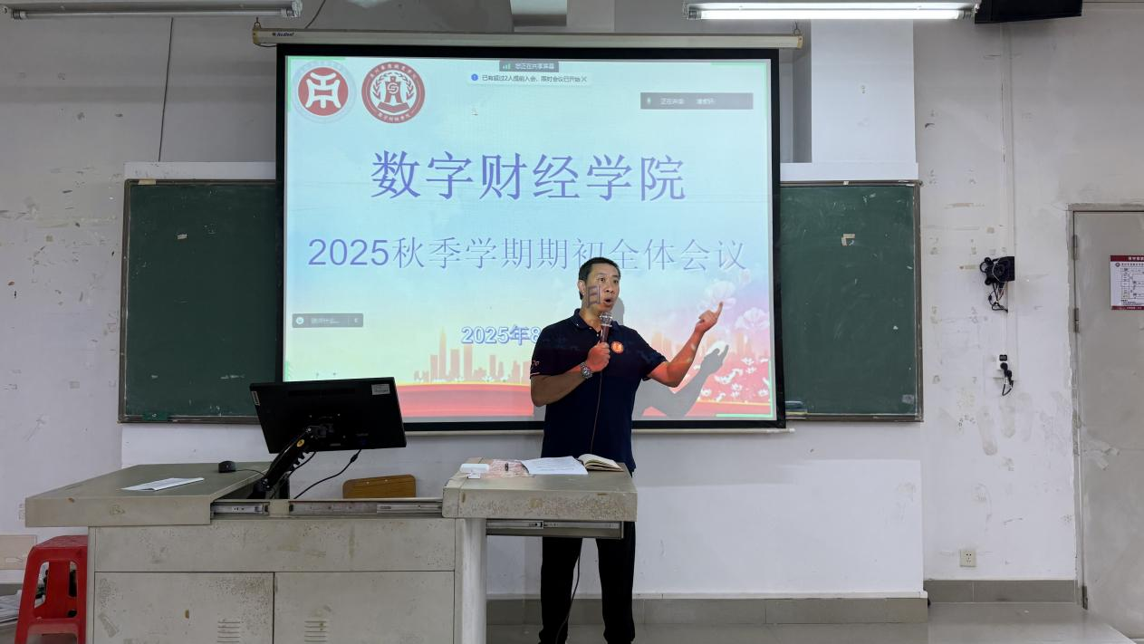8 月 25 日下午 14:30,数字财经学院 2025 年秋季学期期初工作会议在博 A507 召开。会议由顾晖副院长主持,杨玲院长、李纯辉副院长及全体教师参会,江门教师以线上形式...
