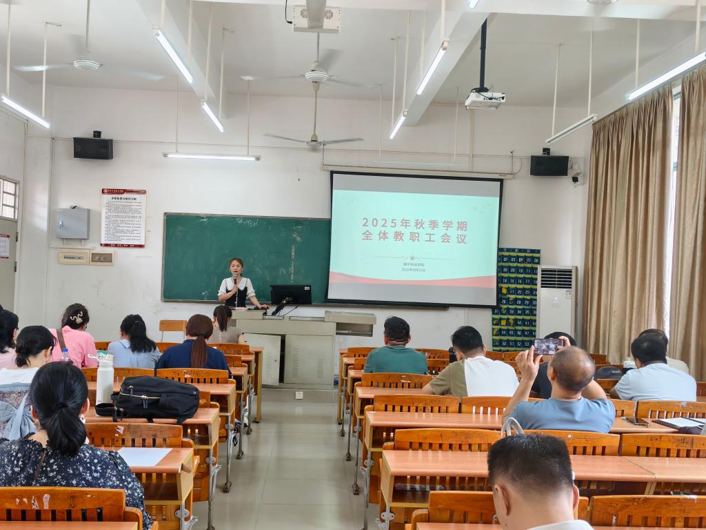 2025年8月25日,数字商务学院在广州校区博学楼B406及江门校区3号楼512室同步召开了2025年秋季学期第一次全体教职工大会。本次会议由数商学院院长沙园松主持,学院全体...