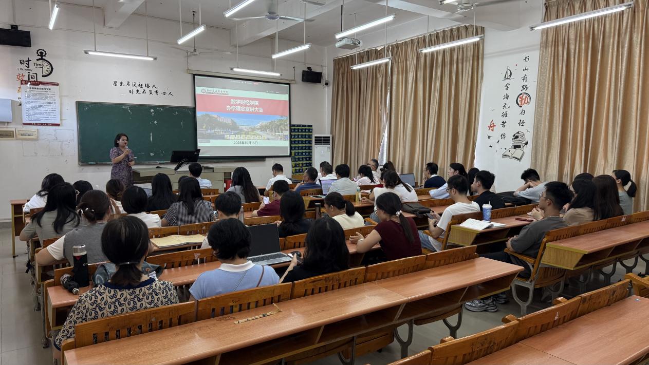 2025年10月15日下午14:30,数字财经学院在博学楼B506召开全体教师会议,江门校区教师通过腾讯会议线上同步参会。会议由杨玲院长主持,李纯辉副院长作主题发言,童国梁副...